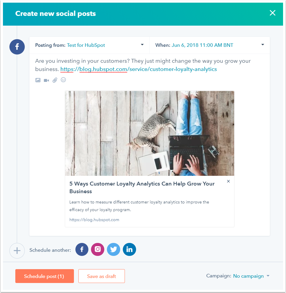Still, by using third-party software such as HubSpot's social media management tools that are included with HubSpot's Marketing Hub Professional accounts, you can easily create and schedule LinkedIn posts.